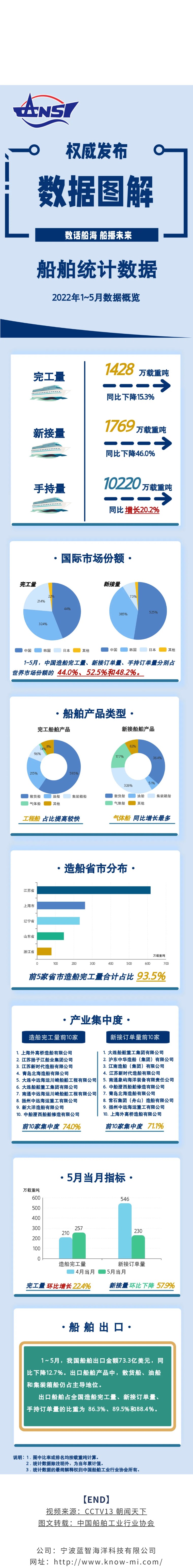 一图读懂丨2022年1~5月船舶统计数据