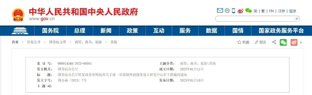 政策 | 关于进一步鼓励外商投资设立研发中心若干措施的通知