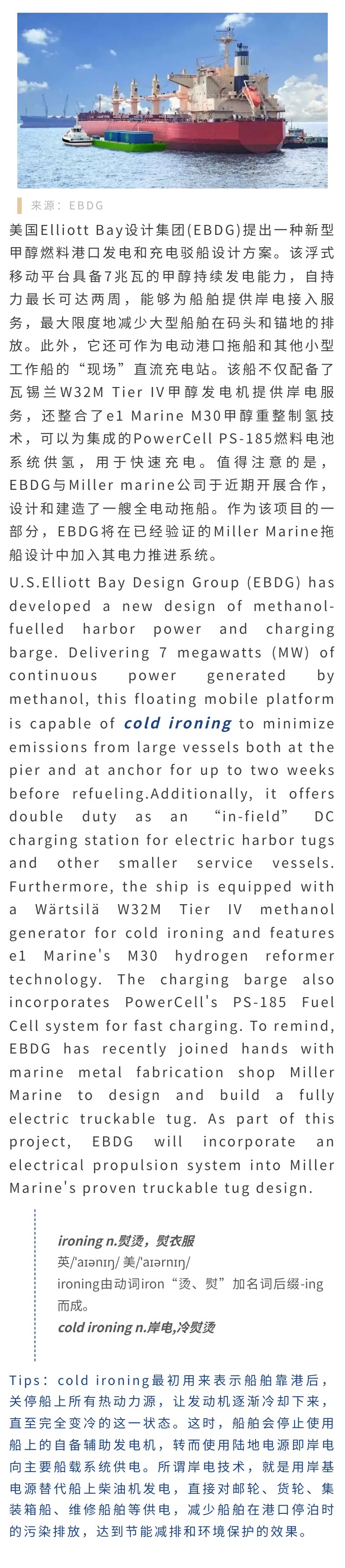 看世界 | 美国Elliott Bay设计集团推出甲醇燃料港口发电和充电驳船