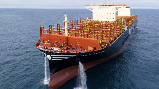 Chinese shipbuilder Hudong-Zhonghua Shipbuilding has delivered the giant 24,116 TEU container ship MSC Tessa to its owner Mediterranean Shipping Company (MSC). The shipyard said that the vessel is actually the largest vessel delivered so far, breaking the record of Ever Alot which was handed over in June last year. With a total length of 399.99 meters, it is 60 meters longer than the world's largest aircraft carrier. The width is 61.5 meters, and the deck area is similar to 4 football fields. The depth is 33.2 meters, and the maximum stack of container layers can reach 25 floors, which can reach the height of a 22-story house. It can carry more than 240,000 tons of cargo. This ship uses air lubrication which reduces the total energy consumption and the corresponding total carbon emissions by 3% to 4%. At the same time, it comes equipped with a hybrid scrubber, small bulbous bow, large diameter propellers, and energy-saving ducts.
