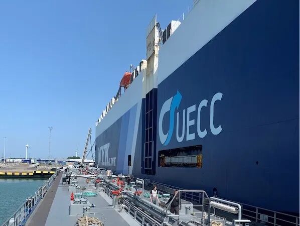 United European Car Carriers (UECC), the leading provider of sustainable short sea ro-ro transportation in Europe, has successfully completed the delivery of sustainable biofuel in the port of Vlissingen, in collaboration with Dutch biofuel provider GoodFuels and vessel owner NYK, marking another significant milestone in UECC’s commitment to environmental sustainability. This operation marks the first time a UECC time-chartered vessel, m/v Emerald Leader, has been bunkered with biofuel, further solidifying UECC’s position as a leader in sustainable maritime transport. GoodFuels’ biofuel, which reduces CO2 emissions by up to 90% compared to conventional fossil fuels, is sourced from renewable and sustainable feedstocks that are certified as 100% waste or residue, and do not compete with food production or cause deforestation. The utilisation of advanced sustainable biofuel on the Emerald Leader, which operates on UECC’s North South Trade, connecting the Eastern Mediterranean with Northern Europe, will significantly reduce the carbon intensity of UECC’s operations. This milestone underscores UECC’s determination to provide sustainable transportation solutions to its customers while contributing to the global efforts of mitigating climate change.